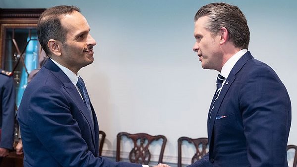 وزير خارجية قطر يبحث مع وزير الحرب الأمريكي دعم علاقات التعاون الاستراتيجية بين البلدين