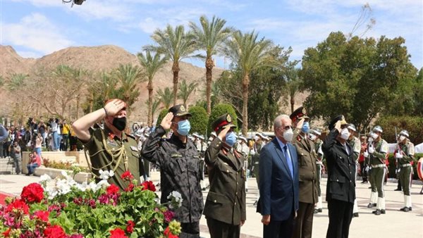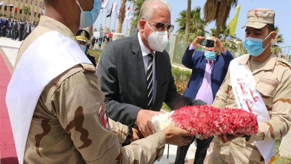 «فودة» يضع إكليل زهور على النصب التذكاري للجندي المجهول في ذكرى عودة طابا