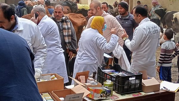 قافلة بيطرية مجانية لتنمية الثروة الحيوانية بقرية الخواجات في الفيوم