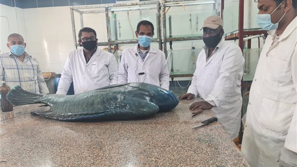 تحنيط سمكة نابليون الضخمة بالبحر الأحمر بعد العثور عليها بمحل بيع أسماك