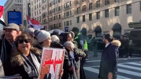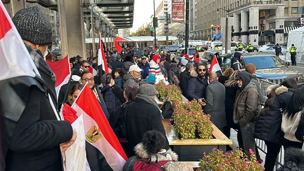 الجالية المصرية تحتشد أمام مقر إقامة الرئيس السيسي في واشنطن لدعمه وتأييده