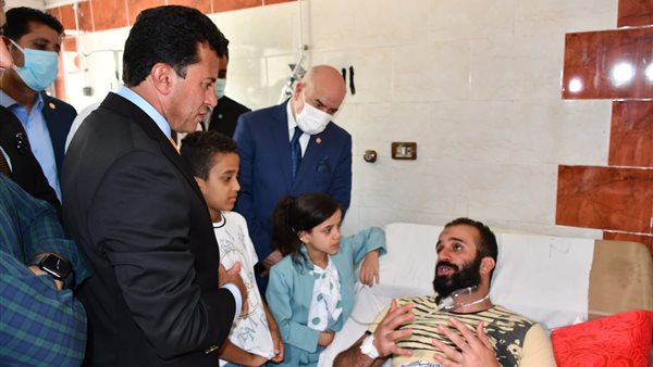وزير الشباب ووفد برلماني في زيارة لمصابي حريق كنيسة أبو سيفين