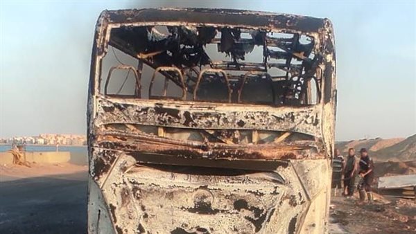 تفحم أتوبيس بطريق الزعفرانة – السخنة ونجاة ركابه الـ45