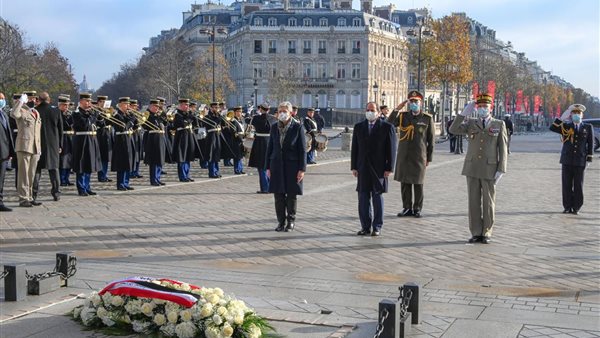 الرئيس السيسي يضع إكليلا من الزهور على قبر الجندي المجهول بباريس