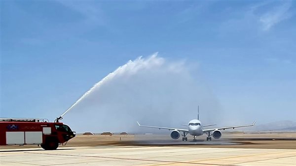 تعرف علي أسباب رش إحدي الطائرات بالمياه بمطار برنيس الدولي اليوم