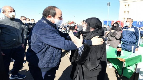 «إحنا عايشين بدعواتكم».. السيسي يقبل رأس والدة أحد طلاب كلية الشرطة | فيديو