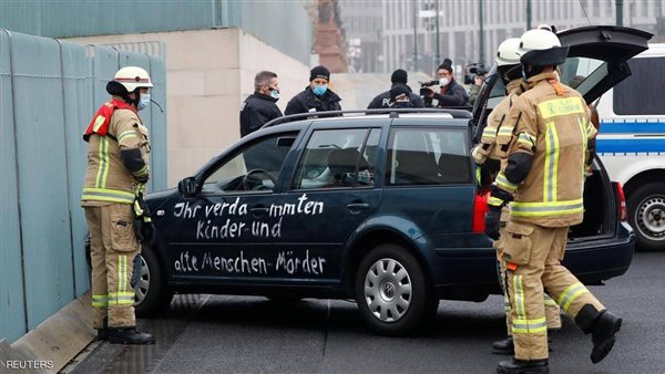 سيارة تصطدم ببوابة مقر إقامة المستشارة الالمانية مكتوب عليها هذه العبارات