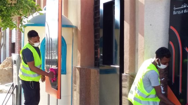 تعقيم ماكينات الصرافة الآلية بواحة الخارجة في الوادي الجديد