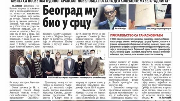 متحف الأدب الصربي يستقبل كتابين موقعين لـ نجيب محفوظ ومحمد سلماوى