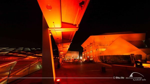 إضاءة مبنى مكتبة الإسكندرية في إطار حملة الـ 16 يومًا للقضاء على العنف ضد المرأة
