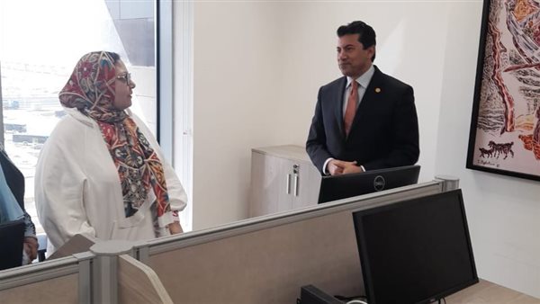 وزير الرياضة يتابع تسجيل الموظفين للبصمة الإلكترونية بديوان الوزارة في الحي الحكومي بالعاصمة الإدارية