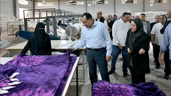 رئيس الوزراء يتفقد مصنع البطاطين والسجاد والملابس في بورسعيد