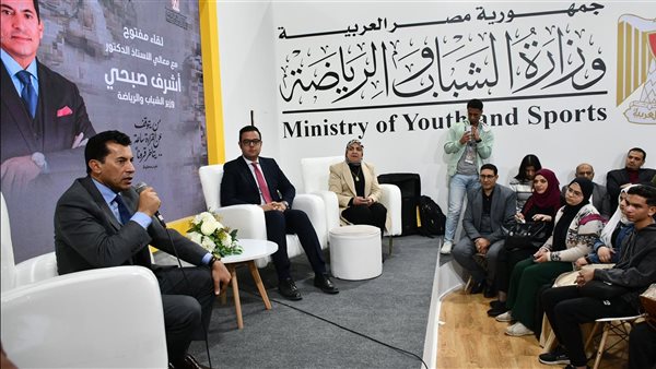 وزير الشباب والرياضة يتفقد جناح الوزارة بمعرض القاهرة الدولي للكتاب