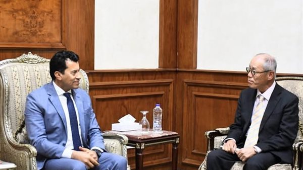 وزير الشباب والرياضة يلتقي السفير الياباني الجديد بالقاهرة ورئيس منظمة الجايكا