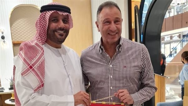 الخطيب يهدي درع وعلم الأهلي لرئيس مجلس الشارقة الرياضي.. صور