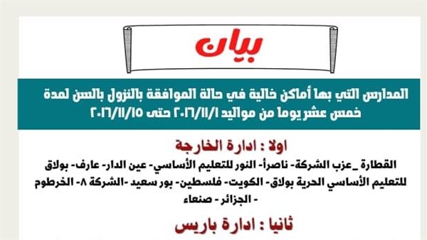 النزول بسن القبول للصف الأول الابتدائي في الوادي الجديد