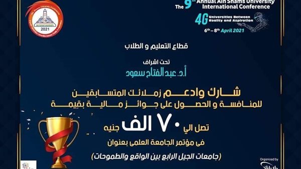غداً.. إعلان جوائز بقيمة 70 ألف جنيه للفائزين في مسابقة الإبتكار بجامعة عين شمس