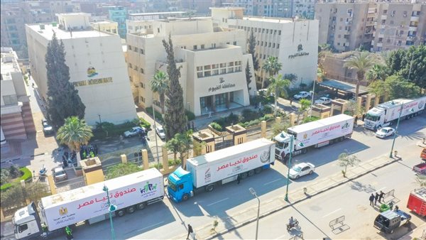 «تحيا مصر» يطلق 101 شاحنة تزن 1616 طنًا لإغاثة أهل غزة.. صور