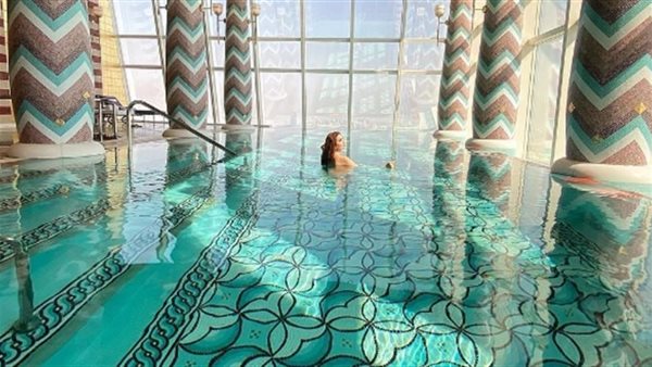 نسرين طافش تستمع بوقتها من داخل حمام السباحة