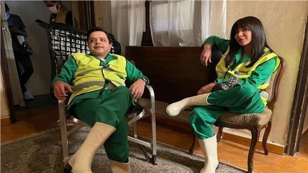 هنيدي والنجوم يهنئون أبطال «قهوة المحطة» في موقع التصوير