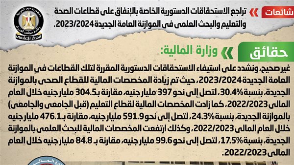 بالأرقام| الحكومة تنفي تراجع الاستحقاقات الدستورية للإنفاق على الصحة والتعليم بالموازنة الجديدة
