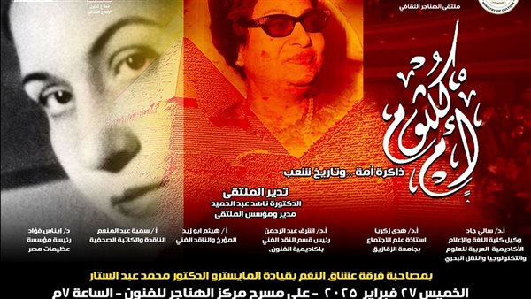 «أم كلثوم.. ذاكرة أمة وتاريخ شعب» في ملتقى الهناجر الثقافي غدًا