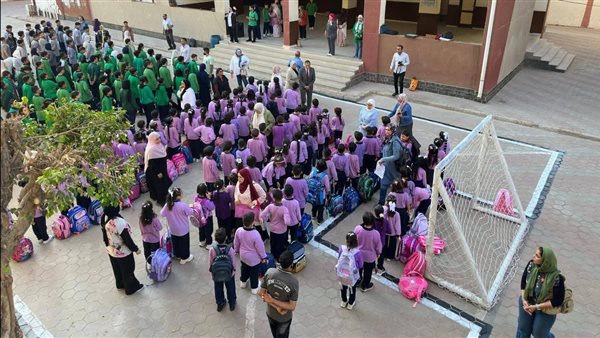 انتظام الطلاب في أول أيام العام الدراسي الجديد بالجيزة