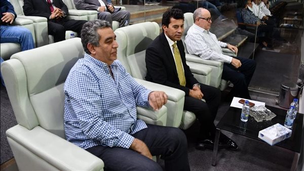 وزير الرياضة يشهد مباراة المنتخب الأولمبي أمام جنوب افريقيا