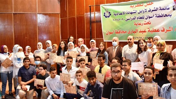 محافظ أسوان يكرم قائمة الشرف لأوائل الشهادة الإعدادية