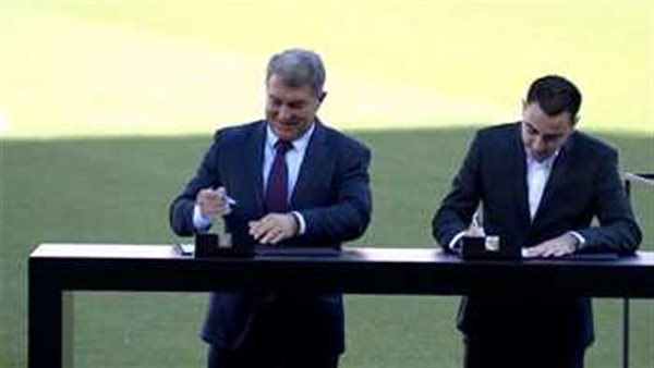 رئيس برشلونة يغني احتفالا بعودة «تشافي»