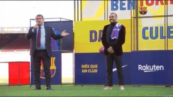 ألفيس يظهر «حافي القدمين» خلال توقيعه على عقود انضمامه لبرشلونة