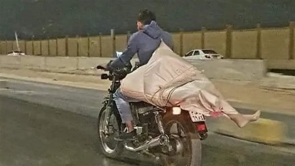 حقيقة ظهور قدم بشرية داخل جوال على دراجة نارية في الطريق العام