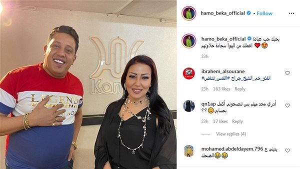 حمو بيكا لـ سمية الخشاب: «بحبك حب عبادة اعملك من الهوا سجادة.. حلاوتهم»