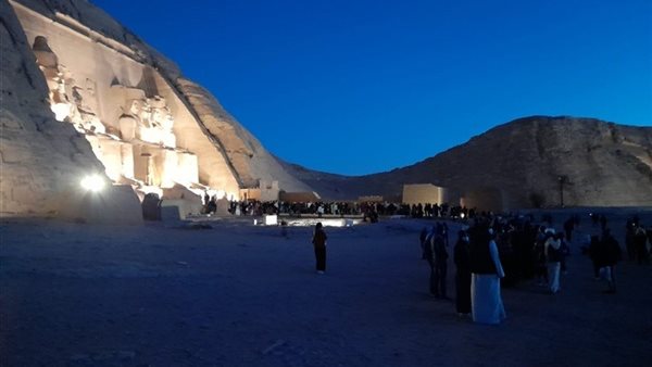 بث مباشر.. توافد المئات لمشاهدة ظاهرة تعامد الشمس على وجه الملك رمسيس الثاني في أبو سمبل