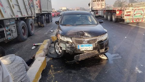 إصابة 7 أشخاص في حادث تصادم 3 سيارات أعلى الطريق الإقليمي.. صور