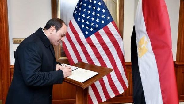 كلمة الرئيس السيسي في سجل شرف وزارة الدفاع الأمريكية