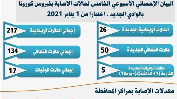 إصابة 26 شخصًا و5 حالات وفاة بكورونا بالوادي الجديد خلال أسبوع
