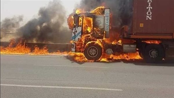حريق هائل في سيارتين نقل على طريق «المنصورة - طناح»