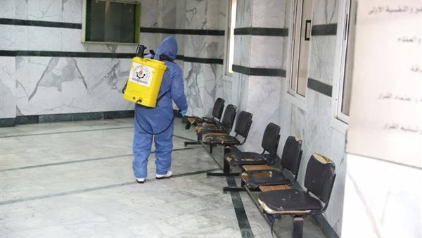 قافلة من جامعة السويس لتطهير وتعقيم مقر القومسيون الطبي