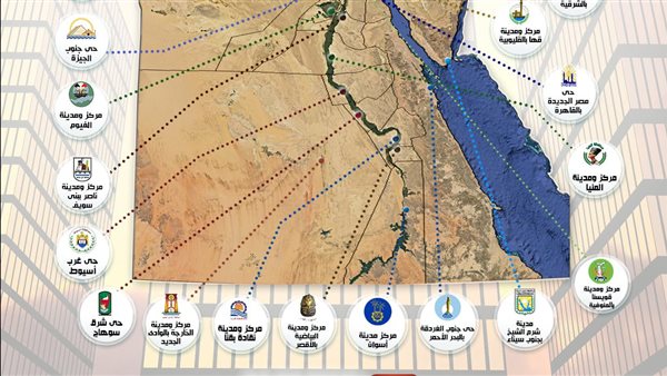 خريطة مدن الصعيد المطبق عليها التشغيل التجريبي لمنظومة الاشتراطات البنائية