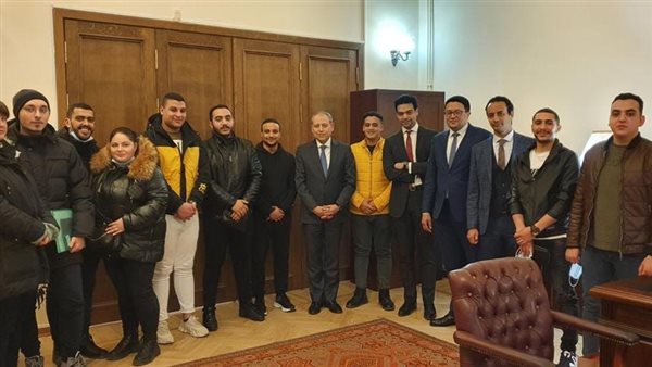 تمهيدًا لعودتهم إلى القاهرة.. سفير مصر بموسكو يلتقي مجموعة مواطنين غادروا أوكرانيا