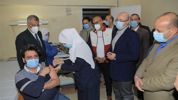 محافظ بني سويف يشهد تطعيم أول طبيب بلقاح كورونا بمستشفيات العزل