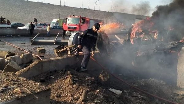 تفاصيل مصرع شخصين في حريق بسيارة نقل على الدائري الأوسطي