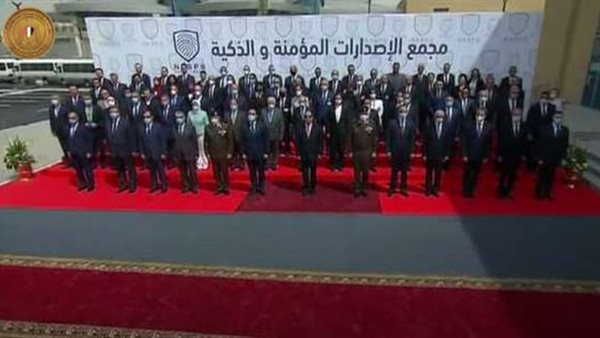 الرئيس السيسي يلتقط صورة تذكارية مع العاملين بمجمع الإصدارات المؤمنة والذكية