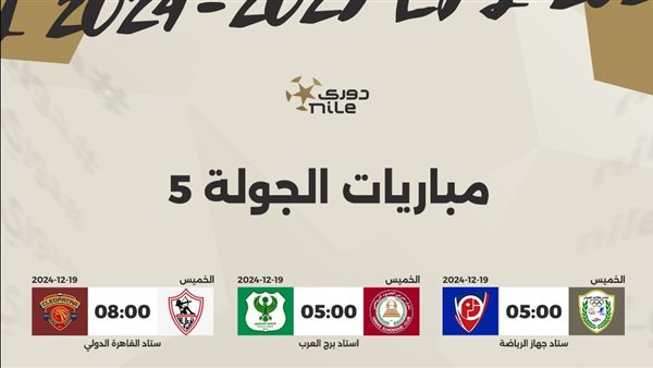مواعيد مباريات الجولة الخامسة بالدوري المصري