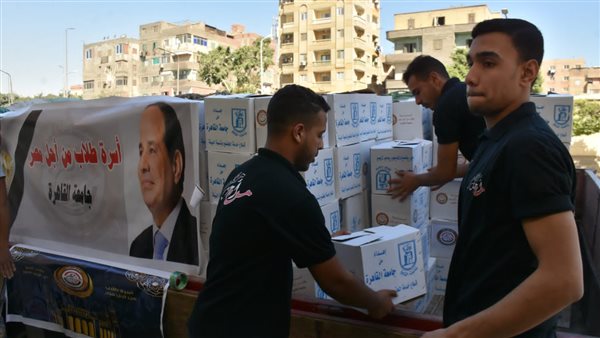 طلاب من أجل مصر بجامعة القاهرة يوزعون 2500 كرتونة مواد غذائية على أهالي البدرشين