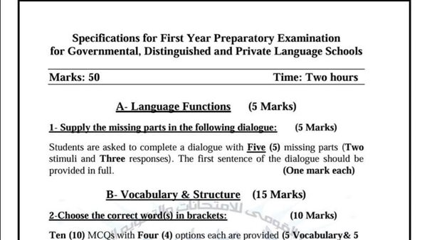 رسميًا الآن.. ننشر مواصفات امتحان الإنجليزي للمرحلة الإعدادية 2024