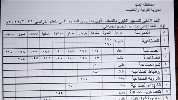 محافظ المنيا يعتمد تنسيق القبول بالصف الأول الثانوي