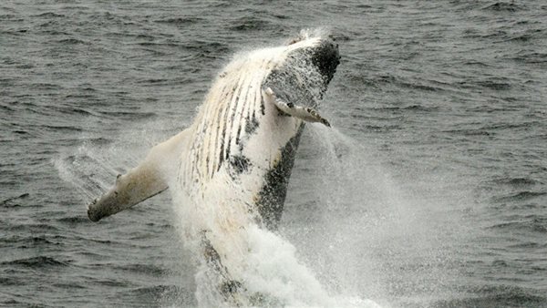 «طوله 8 أمتار».. شاهد ظهور حوت رمادي في البحر المتوسط