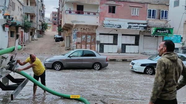 جهود مكثفة لسحب مياه الأمطار من الشوارع في العريش